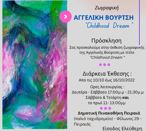 With the chance of my first solo painting exhibition in a marvellous building in the centre of Piraeus ( Dimotiki Pinakothiki Pirea – Filonos 29) From 10- 15 of October 2022 I attach here